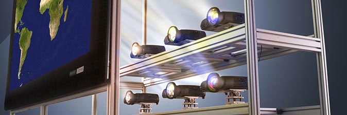 Qualité d'image Le Clusterwall est conçus avec une qualité supérieure d'image. La technologie de raccord d'image est complètement automatisé et compense la différence de vie des lampes entre les projecteurs, offrant une image parfaite avec une haute luminosité et une uniformité de couleurs sur toute la surface de l'écran. Cyviz maintient sa philosophie de pixel parfait et n'utilise aucune fonction de déformation ou de distorsion de l'image (keystone)